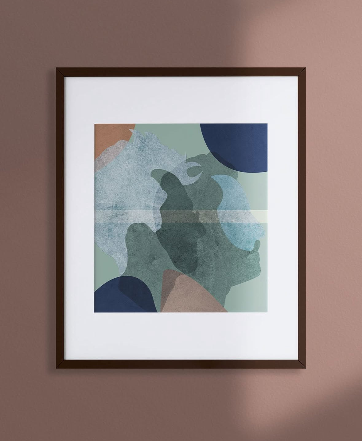 • Twee personen in beeld: subtiele zijprofielen van beiden, elegant en abstract weergegeven